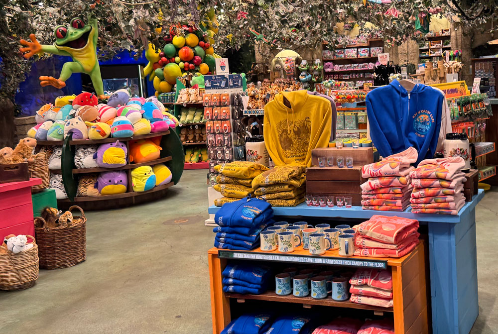 I had never been to a Rainforest Cafe, but while walking through the Arizona Mills mall, I realized that the restaurant filled an entire bingo card of topics for my website. Fake nature, wildvertising, greenwashing, crapitalism, vaguely apocalyptic. . . all in the same place? Wuh? So my wife and I braved the lush plastic jungle and now I’m convinced. . . Rainforest Cafe is a portal to hell.