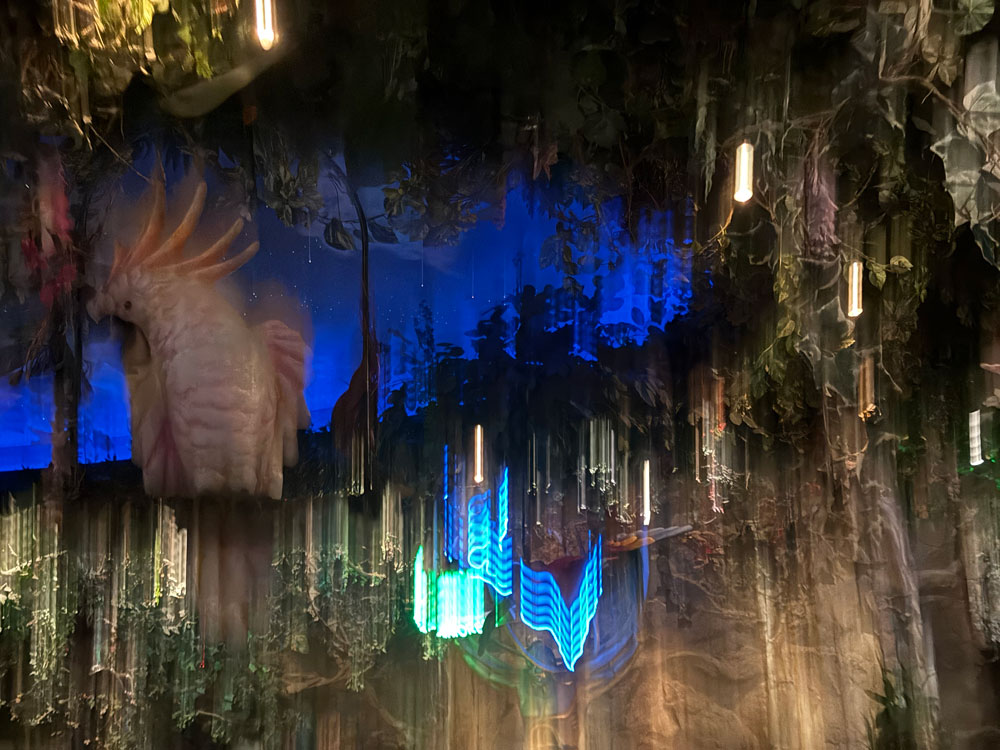 I thought back to all the fake nature that I’ve visited, all the way back to the Enchanted Tiki Room. I wondered if these places were bad. Fake nature can be used for all kinds of things, right? Education. Art. Religion. Entertainment. Solace. Marketing. But how does it affect us? Does it hijack our primitive wiring? Hearken us back to original biomes? Remind us of places that no longer exist? That never existed? And why was the Rainforest Cafe trying to spook the fuck out of me?